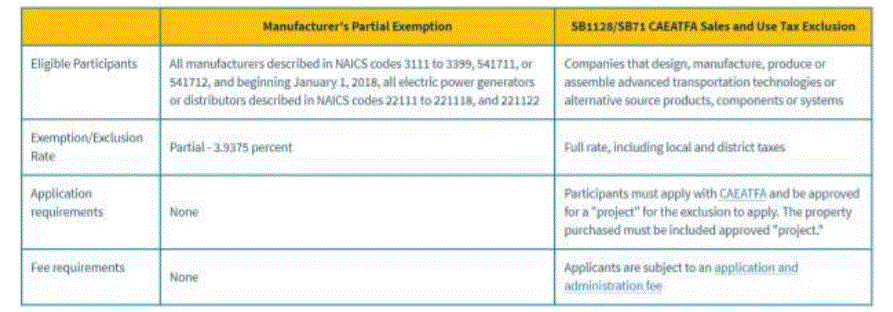 exclusion for manufacturers that promote alternative energy and advanced transportation in California (the "STE
