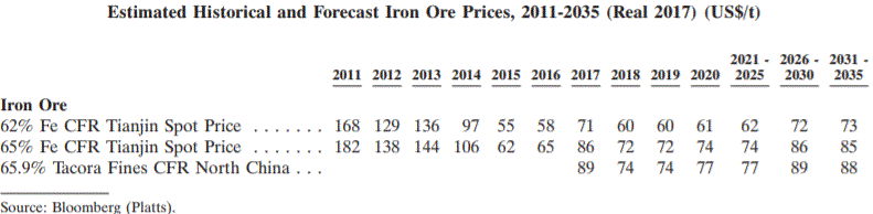 Source: Prospectus of Tacora Resources Inc. dated February 5, 2018