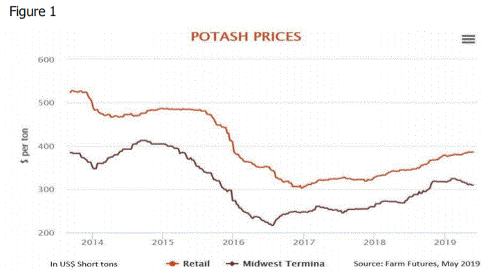 The MOP market has experienced a significant recovery and resurgence of interest from 2016 through today. Potash price is now approximately 58% higher than its lows in late 2016 and world demand has increased markedly. According to the Food and Agriculture Organization of the United Nations (FAO), world demand in 2019 for potash, in all its forms, is forecast to reach 68 million tonnes. Potash demand has been strong with a 4% annual consumption growth over the last 5 years which is well above the long-term average of 2.8%. This growth is due to record demand from all major markets including Brazil, North America, China, India and Southeast Asia. The firmness in potash price is expected to remain as the growth in global demand will adequately absorb new supplies from the slow ramp ups in world-scale greenfield projects. See Figure 1.