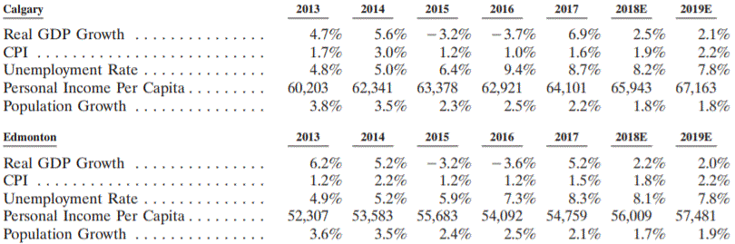 rental rates. Calgary was particularly affected as its primary industry is the oil and gas sector. Edmonton