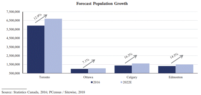 According to Statistics Canada, the Canadian population is forecast to increase by 9% from 2016 to 2022,