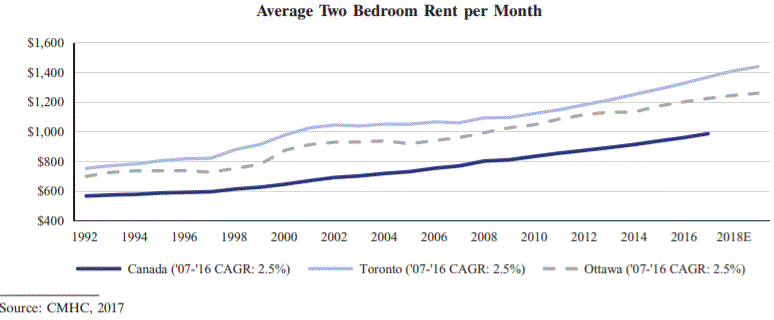 Source: Prospectus of Minto Apartment REIT dated May 23, 2018