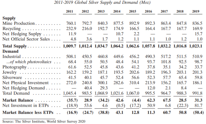 helped to propel the net silver balance to a 50 million ounce deficit, or approximately 5% of demand.